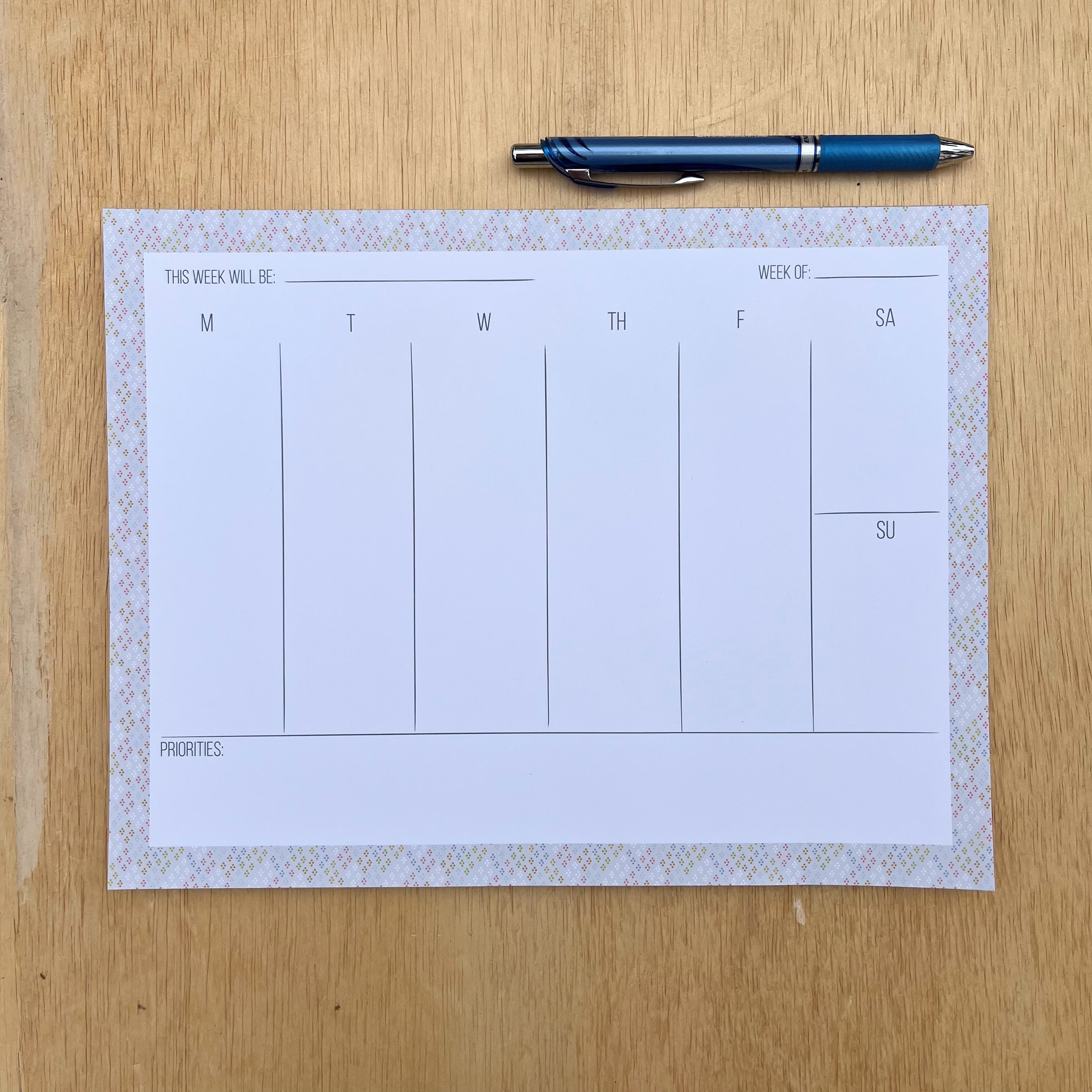 A weekly tear-off notepad perfect for planning your week at a glance, and keeping your tasks and calendar organized!