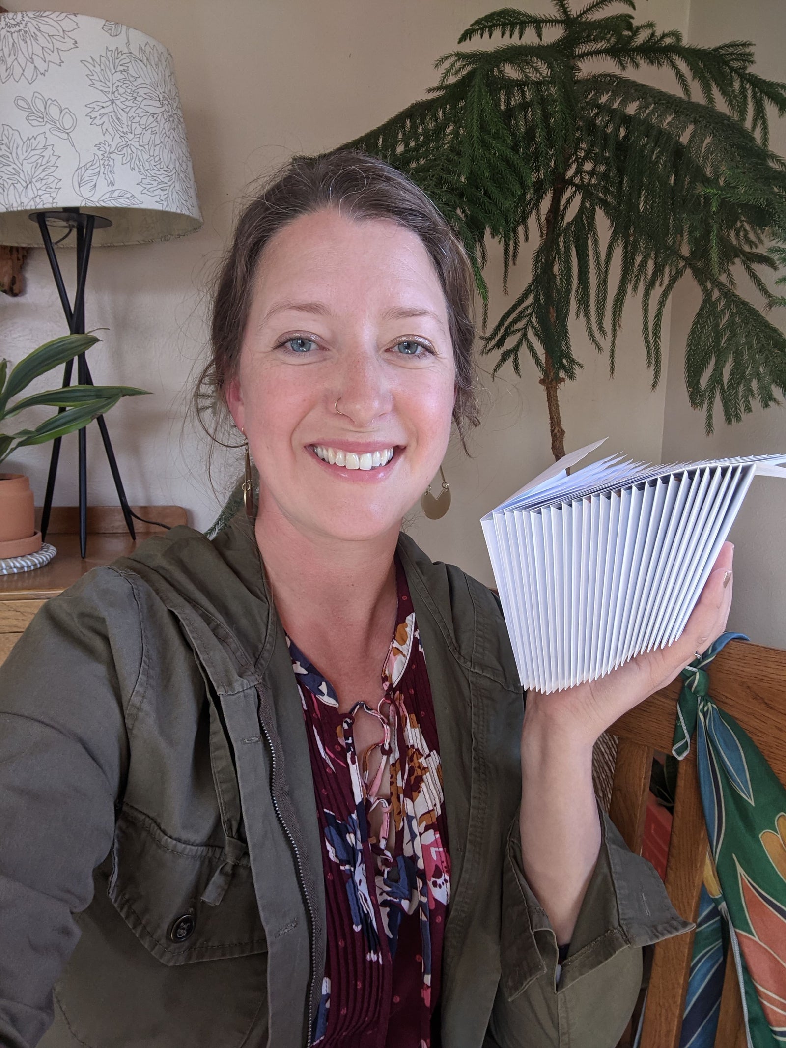 - Stationery for 4 letters: a mix of greeting cards, notecards + lined letter writing paper + envelopes